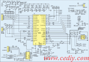 如图1所示,通过I2C总线连接,SP633设计成专门与M61260FP/M61266FP配合使用,可基本实现一个现成的液晶电视方案,甚至无需再作调试工作。M61260FP和M61266FP管脚完全兼容,一般使用M61266FP(PAL/NTSC)即可,如有SECAM制式要求,只需将M61266FP更改成M61260FP即可,电路板不需更改。电视解码器可实现两路AV输入——M61260FP:AV1、AV2(与S端子复用),M61264FP:AV1(与S端子复用)、YUV输入。